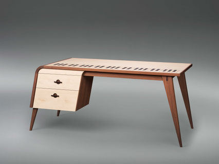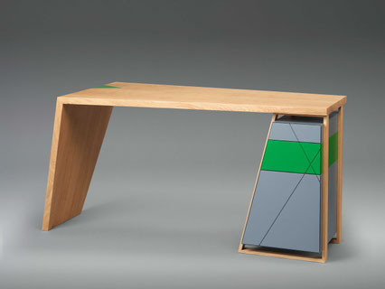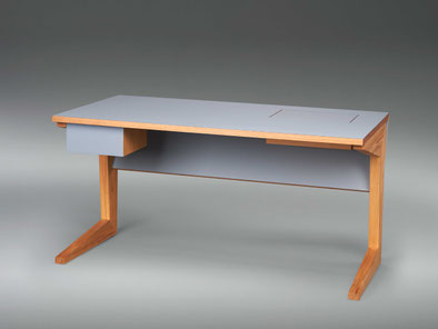 Den ersten Platz sicherte sich der Altriper Jakob Claußen (Ausbildungsbetrieb: F. Jung Möbelschreinerei GmbH, Ludwigshafen), der die Jurymitglieder mit seinem Gesellenstück überzeugen konnte: „Ein reduziertes Möbel, das seinen besonderen Charakter aus der Linienführung bezieht. Der Schreibtisch hat von jeder Seite einen anderen Charakter und ist doch immer schlüssig in der Formgebung. Von der Nutzerseite her präsentiert er sich offen und filigran, fast wie ein Freischwinger, dessen Anmutung er reflektiert. Die Rückseite wirkt durch die graue Front mit den eingeschobenen Beinen fast schon monolithisch. Durch den gelungenen Materialmix aus grauem Fenix und Kirschholz hat das Möbelstück eine gleichzeitig moderne als auch wohnliche Ausstrahlung. Das Gestaltungskonzept ist schlüssig durchgehalten und entspricht in jeder Beziehung den Kriterien des Wettbewerbs Die Gute Form“, begründete die Jury ihr Urteil.